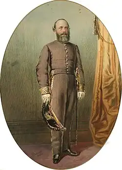 In 1853 Foster returned, with the appointment of Colonial Secretary of the colony of Victoria, which had in the meantime been constituted. Foster held the post of Colonial secretary from 20 July 1853 to 4 December 1854, and was a nominated member of the Victorian Legislative Council from August 1853 to December 1854.[5] He was thus virtually Premier during the difficulties caused by the discovery of gold and the rigid enforcement (which he deprecated) of the unpopular diggers' licences. The troubles culminated in the Ballarat riots, of which Foster was made the scapegoat. Aware of the hostile feeling against him, he tendered his resignation to Sir Charles Hotham, by whom it was accepted on the ground that the Queen's government of the colony was endangered, and with the implied pledge that compensation should be given Mr. Foster for the pecuniary loss which he would sustain by his retirement from the public service. Mr. Foster, however, failed in all attempts to obtain any recognition of his claims to compensation. During his tenure of office he introduced and passed the measure which embodied the new constitution of Victoria, and which for the first time included the principle of an elective Upper House.[2]