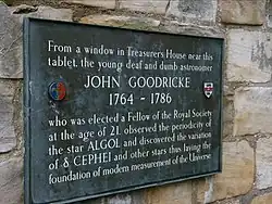 Today there is a marker in York near the site of John Goodricke's observatory.