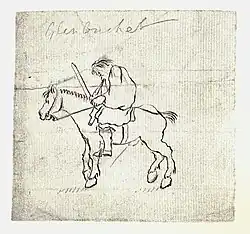 ![]() A contemporary drawing of Glenbucket during the 1745 rising; he was described as riding a "little grey Highland beast".[1] | |