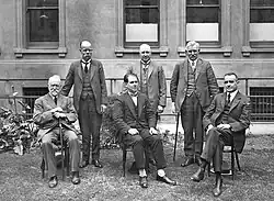 As Premier, Gunn established the State Bank of South Australia and developed Colonel Light Gardens, one of Australia's first planned suburbs. He also improved public service working conditions, built more roads and encouraged rural settlement.[5] A "Thousand Homes Scheme" was carried out to improve the quality and supply of housing for needy families, spending on education was increased, provided better medical facilities and new junior technical schools, higher wages for teachers, and more scholarships. Working conditions were also improved, while measures were undertaken to improve conditions in rural areas "with a visionary afforestation programme in addition to better roads and improvements in access to bore water and technical expertise in agriculture."[6] His reforms impressed many and even received grudging praise from the previously hostile media, who realised he had mellowed into a more moderate figure than the strike leader 15 years previously.