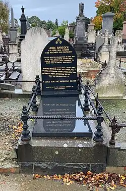 John Hancock (1846 – 22 November 1899) was an Australian politician. He was born in Clerkenwell, London, son of Alexander Hancock, clerk, and his wife Elizabeth, née Russell.[1] He was a Labour member of the Victorian Legislative Assembly from 1891 to 1892 for the seat of Collingwood and from 1894 to 1899 for the seat of Footscray.[2][3]