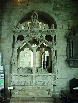 He died on 2 June 1347 at Aldingham[10] and was buried in Cartmel Priory, formerly in Lancashire, now in Cumbria,[11] where survives his monument with effigies of himself and his wife.