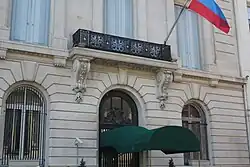 During the 21st century, the house and consulate were sometimes the subject of protests in response to the Russian Federation's military actions. For example, there were protests outside the house after the Russo-Georgian War in 2008,[86] the annexation of Crimea by Russia in 2014,[87] and the Russian invasion of Ukraine in 2022.[88] In addition, the facade was vandalized in 2022 after Russian president Vladimir Putin announced Russia's annexation of the Donetsk, Kherson, Luhansk and Zaporizhzhia oblasts in Ukraine.[89]