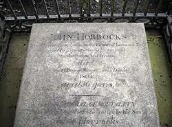 In 1801 Horrocks built "The Lodge" (later called Penwortham Hall) in Penwortham as a residence for himself. The property, which is a Grade II listed building, is today used as a series of private dwellings.[5] He died in 1804 and was buried at St Mary's Church, Penwortham. John Horrocks Way, part of the Penwortham bypass, is named after him. He was the grandfather of explorer John Horrocks.[6]