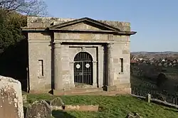 Adam's works also included a family mausoleum to house the remains of Johnstone and his wife Caroline in Alva churchyard.[20]