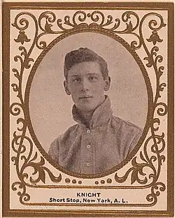 Knight was nineteen when he entered the majors in 1905 with the Philadelphia Athletics, playing for them two and a half years before joining the Boston Americans (1907), New York Highlanders/Yankees (1909–11, 1913), and Washington Senators (1912). Knight was in the Athletics 1905 Opening Day as a replacement for incumbent shortstop Monte Cross, out until mid-season with a broken hand. He responded hitting .400 in June, but faded after that and finished the season at .203.