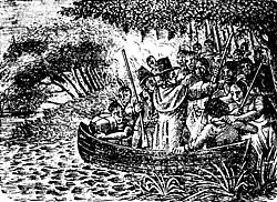John Lawson was born in England. Little is known definitively about his early life. He appears to have been the only son of Dr. John Lawson (1632–c. 1690) and Isabella Love (c. 1643–c. 1680).[1] Both were from London. The family owned land near Kingston upon Hull, where Lawson may have been educated in his youth. He attended lectures at Gresham College, where the Royal Society often met. His education seems evidenced by his book. His freedom to explore and take charge suggest he was well placed in society. After an acquaintance in London assured him that "Carolina was the best country", Lawson as a young man sailed for England's North American colonies, arriving in Charleston, South Carolina on August 15, 1700.