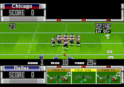 Neurath believed that LookingGlass introduced "some nice improvements" to the franchise.[16] A preview in Mega noted that the game had "a lot of added animation" compared to its predecessors.[8] A writer for Mega Drive Advanced Gaming believed that "the most obvious addition is the digitised speech",[7] which did not appear in the game's Super NES version.[18] In its November 1992 issue, Electronic Gaming Monthly estimated that the game was "100% complete".[19] The game's Genesis and SNES versions were released at the same time.[18] As with earlier John Madden Football titles, John Madden Football '93 lacks the NFL license,[10][11] which prevented the inclusion of official teams, colors, player names and stadiums.[12] Sega's competing title, the Joe Montana-endorsed NFL Sports Talk Football '93, had received the license that year.[11]