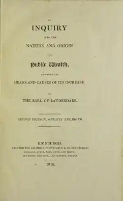 - ^ a b c Thompson, Herbert (1974). "Lauderdale's Doctrine and Policy on the Parliamentary Stage". Nebraska Journal of Economics and Business. 13 (4). Retrieved 28 May 2025.