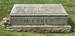 McLaren died January 12, 1943, in San Francisco, at the age of 96.[1] His body lay in state in the San Francisco City Hall Rotunda. Afterwards, the funeral cortege drove his casket through Golden Gate Park as a special honor. He was buried in Colma[7] at Cypress Lawn Memorial Park.