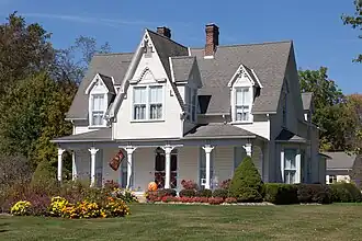 The main house was built circa 1874, and is a 1+1⁄2-story, frame dwelling with a steeply pitched gable roof. Designed in the Gothic Revival style, this house was renovated in 1990, at which time a full basement was added. Also located on the property are the contributing summer kitchen (c. 1865), barn (c. 1870), carriage house (c. 1870), smokehouse (c. 1870), and a wrought iron fence (c. 1910).[2]