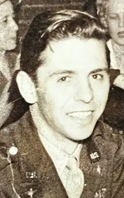 Along with thousands of young men his age, White received orders to report to Alabama's Maxwell Field, a massive training center with hundreds of two-story white wooden barracks.[3]: 13 He underwent instruction and testing and was eventually assigned to bombardier/navigator school. He spent months of training in Arizona, which included learning to use the top secret Norden bombsight,[3]: 21 a gyroscopic device that could provide high accuracy in placing bombs.[7] After receiving his commission as a Second Lieutenant, he was sent to South Carolina where men of different Air Corps specialties were put together to form bomber crews. A crew typically consisted of a pilot, a co-pilot, and a bombardier/navigator, who were officers, and two gunners and a radio operator, who were enlisted men.[3]: 24 : 80 White and his crew embarked on training missions, striking practice targets in both day and night bombing simulations over the southeastern US. At the completion of their training, they were sent north on a long train journey to Michigan with many similar crews to pick up a total of 36 newly minted B–25 bombers near the factory where they were built.[3]: 27 When they arrived in Michigan they encountered three feet of snow which made flying impossible for several days. Passing time, White won $200 in a card game and took his crew members to Chicago to the Palmer House Hotel, where they received greatly-discounted rooms. Entering a nearby club, they heard a fine orchestra, led by noted bandleader Gene Krupa, who came to their table to sit with them and ask about what they were doing.[3]: 28