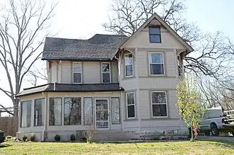 The Jones House is a historic house at 220 Bush Street in Sulphur Springs, Benton County, Arkansas. It is a 2+1⁄2-story wood-frame structure with a T shape and cross-gable roof. The front facade, one of the ends of the crosspiece of the T, has beveled corners with the roof overhanging above the second floor, an Eastlake element. A porch wraps around the stem of the T, which extends to the south. Built c. 1896, it is a fine and well-preserved example of Eastlake-style architecture.[2]