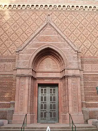 The buildings contains three prominent quotations on its main, west-facing facade. Above the door, there is a quotation from Proverbs, near the south end of the facade there is a passage from Plato, and on the north part a quotation from Lao Tzu.[14]