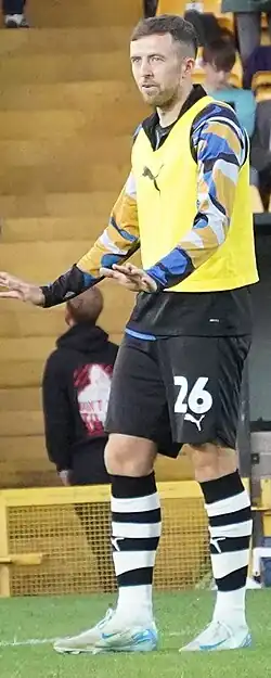 On 5 October 2024, he scored at Bolton Wanderers from the edge of the box after being picked out directly from a corner kick, and was nominated for the October League One Goal of the Month award.[38] He injured his Achilles tendon during the game, which left him sidelined for four weeks.[39][40] He scored his final goal for the Shrews on 14 December, a consolation in a 4–1 home loss to manager Gareth Ainsworth's former club Wycombe Wanderers.[41] He played 38 matches of the 2024–25 campaign, scoring four goals.[42] On 7 May 2025, following the Shrewsbury's relegation in last place, the club confirmed that he would be released upon the expiry of his contract as manager Michael Appleton wished to move forward with a smaller squad.[43][44][45]