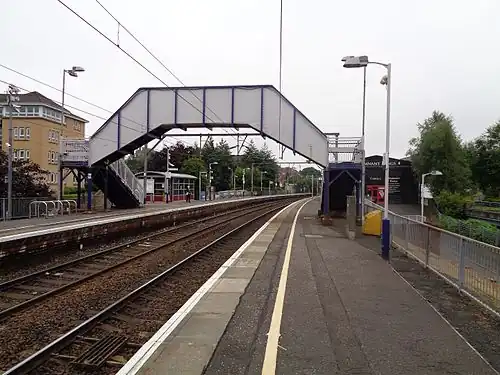 The station has a small car park with eleven spaces and is not permanently staffed.[19] Instead, it features a ticket machine, part of an initial batch of ten installed by SPT in late 2003 and early 2004 to combat fare evasion, which was estimated to cost the company £2 million annually.[20] Both platforms are elevated and each has a wheelchair ramp. There is a connecting footbridge between the two platforms.