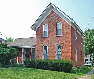 The Jortin Forbes House is a vernacular two-story brick Stick/eastlake style Upright and Wing house. The structure sits on a small lot. It has a two-story upright section and a one-story wing to one side, both gabled. It has a wide frieze topped with a raking cornice without returns. The windows are in segmental-arched head openings. The front features a hipped roof front porch, with spindled balusters and decorative brackets, which is probably a later addition.[3] A single-story addition on the rear of the house was probably built about 1881.[2]