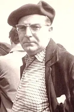 In 1947 Zubiaur married María Josefa Carreño Cima (1918–2015).[19] The couple settled in Pamplona[20] though they used to spend much time in Leitza;[21] they had 7 children, the first one born in 1948. Their marriage endured 65 years; when passing away, Zubiaur had 23 grandchildren.[22] Two of Zubiaur's sons became public figures. The oldest one, José Ángel Zubiaur Carreño, held high administrative and economic offices in the Navarrese self-government and represented Navarre in various central EU bodies;[23] a longtime UPN politician, he left the party in 2013[24] and assumed more right-wing positions.[25] Francisco Javier Zubiaur Carreño held high jobs related to Navarrese culture and is professor in history of art, author of books related to painting, film and museology;[26] politically he tends to a more progressist stand.[27] Among other notable relatives,[28] Zubiaur's paternal uncle Román Zubiaur Salazar was a fairly popular comic actor, in the early 1920s known as a Basque stage character "Martinchú Perugorría".[29]