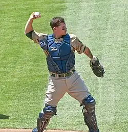 Lobaton hit his first Major League home run against the Baltimore Orioles on July 25, 2012.[3] During a three-game series against the Toronto Blue Jays from August 16–18, 2013, Lobaton hit a walk-off triple[4] and walk-off home run,[5] becoming the first catcher to do so since Wally Schang in 1917 and only the fourth player overall since 2002.[6]