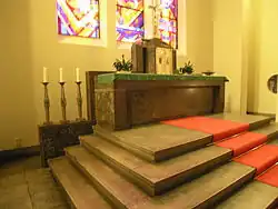 - Altar, tabernacle and baptismal font in the church of Our Lady of the Mountains in Bozkov, 1940