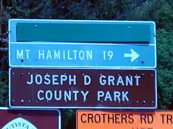- ^ "Joseph D. Grant County Park. Parks and Recreation". County of Santa Clara. June 12, 2014. Retrieved 2014-09-06.
