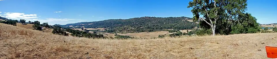 Joseph D. Grant County Park is situated in the Diablo Range, near Mount Hamilton. Elevations range from about 1,400 feet (427 m) in Halls Valley to peaks over 2,985 feet (910 m) on the Park's eastern edge.[3] This upward gradient leads to even higher peaks in the crest of the range and to Mount Hamilton itself at 4,209 feet (1,283 m). The western slopes of Mount Hamilton drop into Smith Creek which forms the eastern boundary of the Park.