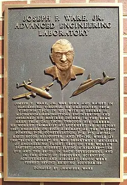 Joseph Fulton "Joe" Ware Jr. (November 8, 1916 – April 23, 2012)[1] was a flight test engineer at Clarence "Kelly" Johnson's famed Skunk Works in the Lockheed Corporation on the first two Air Force One's, the U-2, the SR-71 Blackbird, and many others from World War II and the Cold War, becoming Department Manager of Engineering Flight Test. He was the son of Joseph F. Ware Sr.