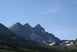 Jotunheimen National Park (Norwegian: Jotunheimen nasjonalpark, lit. 'Home of the Giants') is a national park in Norway, recognized as one of the country's premier hiking and fishing regions. The national park covers 1,151 square kilometres (444 sq mi) and is part of the larger area Jotunheimen. More than 250 peaks rise above an elevation of 1,900 metres (6,200 ft), including Northern Europe's three highest peaks: Galdhøpiggen at 2,469 metres (8,100 ft), Glittertind at 2,452 metres (8,045 ft) and Store Skagastølstind at 2,405 metres (7,890 ft).