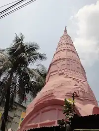 Inside the boundary of this temple there are basically two temples. One of the temples is of Kali Devi, the other one, which has a dome, is of Shiv. The dome is made out of plaster and is visible from the outside. Locals of that area refer to this dome as the Joy Kali Temple. The front of the temple complex is a busy stop for human haulers that go into old Dhaka. The temple has tiles on the walls all around, and the floor is made out of mosaic. There are pictures of Hindu Gods and Goddesses printed on the tiled walls of the temple. The entrance to the temple is welcomed by a logo made of stainless steel saying 'Om'- which is a Hindu divine symbol. In front of the Kali Devi statue is a bell hanging from above. It is a ritual to ring the bell after entering the temple and before leaving. Joy kali temple might be a square-shaped structure with columns which are heavy thick material and also a thick border in the lower part of the column. For this reason, it might be strong and have its structure now after 400 years and also have one shikhara. One of the temples is of kali devi, the other one, which has a shikhara, is of shiv. Basically, the temples were built with general form, as there are 2 garbha griha for 2 gods. One is on the north side, another is on the east side, and antarala, which can be similar to typical of north Indian temple, then mandapa, and ardho mandapa after entrance for worshipers. And the upper walls are arched-shaped. The south side have on main entrance. On its right side, there is a place for holy basil.