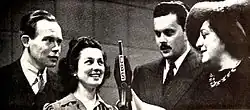 ![]() Joyce Jordan — Girl Interne actors: Myron McCormick (as Paul Sherwood), Ann Shepherd (as Joyce Jordan), Erik Ralf (as Dr. Hans Simons) and Adelaide Klein (who played a variety of roles) in a photograph from 1940. | |