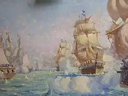 Back in Cadiz, Michelena served two months in the Corps of Dragoons of the Spanish Navy. He later was promoted to lieutenant, and served in Havana and Puerto Rico. On February 14, 1797, he fought in the Battle of Cape St. Vincent, in which a Spanish fleet was defeated by a Royal Navy fleet under John Jervis.[18] In 1798, he served on the ship San Pablo, commanded by Captain of the Navy Jose de Mazarredo y Salazar, in pursuit of the British squadrons blockading the port of Cadiz. He also took part in the capture of the 14-gun British sloop Pitt.[19]