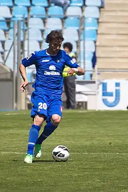 In mid-August 2011, after Valera and Atlético amicably terminated the player's contract, which expired in June of the following year, he signed with fellow top-division side Getafe CF.[15] He started at right-back during his first season, replacing longtime incumbent Miguel Torres,[16] and scored his first goal on 26 November 2011 whilst handing FC Barcelona their first loss of the campaign through a 67th-minute header, for the game's only goal at the Coliseum Alfonso Pérez.[17]