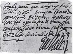 A number of Africans were among the prisoners. The Spanish spared nineteen boys due to their age, and strangled the others.[17] In 1638 Eulate's term as governor ended and he returned to Spain. He was called to the court of the Kingdom of Navarre in 1640, made a member of the Order of Santiago, given the title of Maestre de Campo and appointed castellan of Pamplona.[1] The historian France V. Scholes described Eulate as "a petulant, tactless, irreverent soldier whose actions were inspired by open contempt for the Church and its ministers and by an exeggerated conception of his own authority as the representative of the Crown." He was often quoted as saying "The king is my patron."[18]