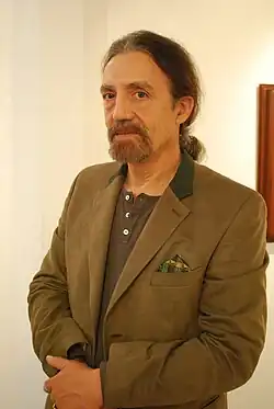 Julio Carrasco Bretón was born in 1950 in México.[1] He studied chemical engineering at Universidad Nacional Autónoma de México, graduating with honors in 1975.[2] He studied painting with Lino Picaseno at the Escuela Nacional de Artes Plásticas .[1] In 1977, he began studying for a masters in the philosophy of science.[2] With this mixed background, he has since given classes in art, philosophy and chemistry at UNAM.[3]