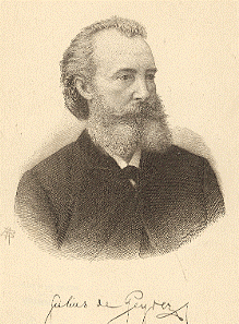 Julius De Geyter (Lede, 25 April 1830 – Antwerp, 18 February 1905) was a Flemish writer born in Lede, Belgium. He started his career as a teacher and journalist. In 1874, he became director of the Bank van Lening in Antwerp. Together with J.F.J. Heremans and E. Zetternam he founded the literary illustrated magazine "De Vlaamsche School", which existed from 1855 until 1862. Together with his friend Julius Vuylsteke he was one of the most important political poets of his time and he was one of the leaders of the Flemish movement. Julius De Geyter is the author of many romantic and political poems, which were mostly rhetorical and sometimes anticlerical. He wrote also to the texts of several cantatas of Peter Benoit, such as the Rubenscantate in 1877. In 1874, he also rewrote the text of Reinaert de Vos in rhyme. He died in Antwerp at age 74.