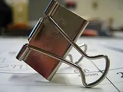 - The patent application for the newly-invented binder clip was filed by Louis E. Baltzley of Washington, D.C., for a clip to bind multiple sheets of paper with "jaws for the reception of handles of spring metal comprising two arms having a tendency to spread laterally".[3] U.S. patent no. 1,139,627 was granted on May 18, 1915, giving Baltzley exclusive rights for the manufacture and distribution of the office product until 1932. Essentially unchanged in its design, the binder clip continues to be used worldwide.