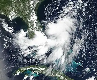 On July 13, a broad area of low pressure formed off the Atlantic coast of northern Florida.[1] The NHC designated the system Invest 93L on July 14.[2] On July 15, the disturbance began showing some signs of a developing circulation.[3] Later that day, it moved onshore over Northeast Florida,[4][5] then across Central Florida.[6] The next day, the system moved generally westward across the Florida Panhandle,[7] and then over Louisiana.[8]