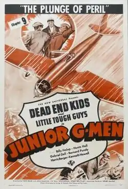 Junior G-Men is a 1940 Universal film serial. It was Universal's 116th serial (and the 48th with sound) of their total of output of 137. The serial is one of the three serials starring "The Dead End Kids and Little Tough Guys" who were under contract to Universal at the time. The plot of Junior G-Men is a pre-World War II G-Man story about fifth columnists in the United States, with the FBI joining forces with youth to save the country.[1][N 1]