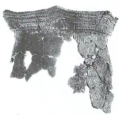 Eleven sherds representing a single vessel were present at Juntunen.[4] Ramey Incised is a Middle Mississippian pottery type first identified at the Cahokia Old Village site in southern Illinois. It has also been recovered at Carcajou Point in Wisconsin, but its presence at Juntunen marks the northernmost occurrence of any Middle Mississippian pottery type. Tempering is shell-tempered mixed with grit and decoration is a distinctive pattern of curvilinear designs. The vessel shape is thought to be a bowl with sharply defined shoulder. It was recovered in intermediate strata between the Bois Blanc and Juntunen Phases.[4][13]