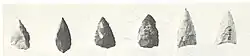 - Stone tools including 245 scrapers and 198 projectile points (of which 133 were triangular Juntunen points as defined by the excavators)
