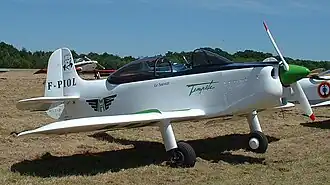 The Tempete is a low-wing cantilever monoplane of conventional configuration and utilising wooden construction throughout apart from the fabric covering of the flying surfaces. The undercarriage is of the fixed, tailwheel or tailskid type. The pilot's seat is enclosed by a bubble canopy; some aircraft have a second seat to carry a passenger of less than 55 kg (121 lb).[2]