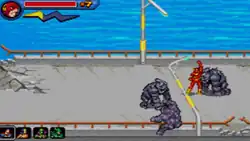 The game's levels were said to be visually distinct, and the boss battles were commended as varied and challenging, but the core beat 'em up loop was deemed repetitive. Thomas noted that the game's diverse locations and strategic boss battles keep the proceedings fresh, and that the unlockable modes extend replayability.[1] Provo highlighted the variety in level settings and enemy types, with boss battles being particularly engaging due to their multiple attack patterns and shifting behaviors. He added that the game mitigates repetition by introducing new enemies regularly.[3] Hoffman acknowledged the diverse enemies and "nifty" boss battles but felt the game became repetitive due to limited attack variety, despite the varied levels.[9] Dinowan found the levels repetitive, with enemies that felt similar despite visual differences. He considered the game lacking in depth and indistinguishable from other GBA beat 'em ups.[7]