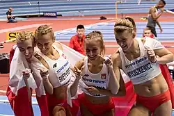Justyna Święty-Ersetic (Polish pronunciation: [jusˈtɨna ˈɕfjɛntɨ ɛrˈsɛtit͡s]; born 3 December 1992) is a Polish sprinter specialising in the 400 metres.[3] She was the 2018 European champion and a two-time European Indoor Championship medallist in this event. Święty-Ersetic won many medals at major championships as part of Polish 4 × 400 m relays, including a gold in the mixed relay and a silver in the women's relay at the 2020 Tokyo Olympics.