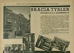 - the Tysler Brothers Confectionery Factory (Polish: Fabryka Wyrobów Cukierniczych Braci Tysler) set up in 1922 at 9 Warmińskiego street.[2]