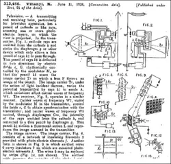 - ^ Tihanyi, Koloman, Improvements in television apparatus. European Patent Office, Patent No. GB313456. Convention date (Germany): 1928-06-11, UK application: 1929-06-11, published: 1930-11-11, retrieved: 2009-12-25.