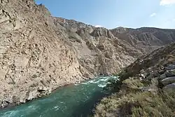 The Kökömeren (Kyrgyz: Көкөмерен) is a right tributary of the Naryn located in Chüy Region (Jayyl District) and Naryn Region (Jumgal District) of Kyrgyzstan. It is formed by the confluence of the rivers Suusamyr and Batysh Karakol (Western Karakol). It is 199 kilometres (124 mi) long, and has a drainage basin of 10,400 square kilometres (4,000 sq mi), with an average discharge of 80.3 cubic metres per second (2,840 cu ft/s).[1] It possesses significant hydro-power potential.[2] In June 2011, China and Kyrgyzstan signed a protocol of intent to begin construction of Kökömeren River chain of power plants in 2012.[3] Whitewater rafting and fishing are popular tourist activities on the Kökömeren.