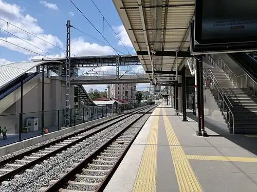 Küçükçekmece railway station (Turkish: Küçükçekmece istasyonu) is a railway station in Küçükçekmece, Istanbul. The station was originally built in 1872 by the Oriental Railway. In 1955, the station was rebuilt as a stop on the Istanbul suburban commuter rail line until 2013, when the entire line was closed down for expansion and renovation.[1] Küçükçekmece station was demolished as a new one was built just south of the former platform and a third track was added. The new station entered service on 12 March 2019 and became a stop on the Marmaray commuter rail line.[2]