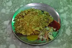 Kabiraji (Bengali: কবিরাজি) is an Indian fried dish made of chicken,[1] fish.,[2] mutton or prawn. This is a popular dish in eastern India, originating from Kolkata.[3][4] The dish has a fish, chicken or mutton cutlet inside, wrapped in a coating of crunchy deep-fried egg floss.