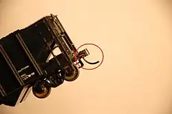 Their claim to fame and financial success came when they developed and patented their HO knuckle coupler which became the de facto standard in the hobby in the USA, even if the NMRA defined X2f coupler was the norm.[1] It is becoming increasingly adopted by serious modellers in the UK and other English-speaking countries because of its potential as a hands-free automatic and/or delayed coupler that permits shunting moves etc remote from the operator without the use of switched uncoupling devices.[1] Its increasing popularity is helped by the production of couplers #17-#20 which fit into NEM 362 standard coupling pockets increasingly fitted to UK models by Bachmann, Dapol and Hornby.