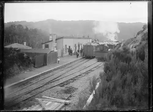 ![]() Trains crossing at Kaitoke Station. Class Wb locomotives, 1901 | |||||